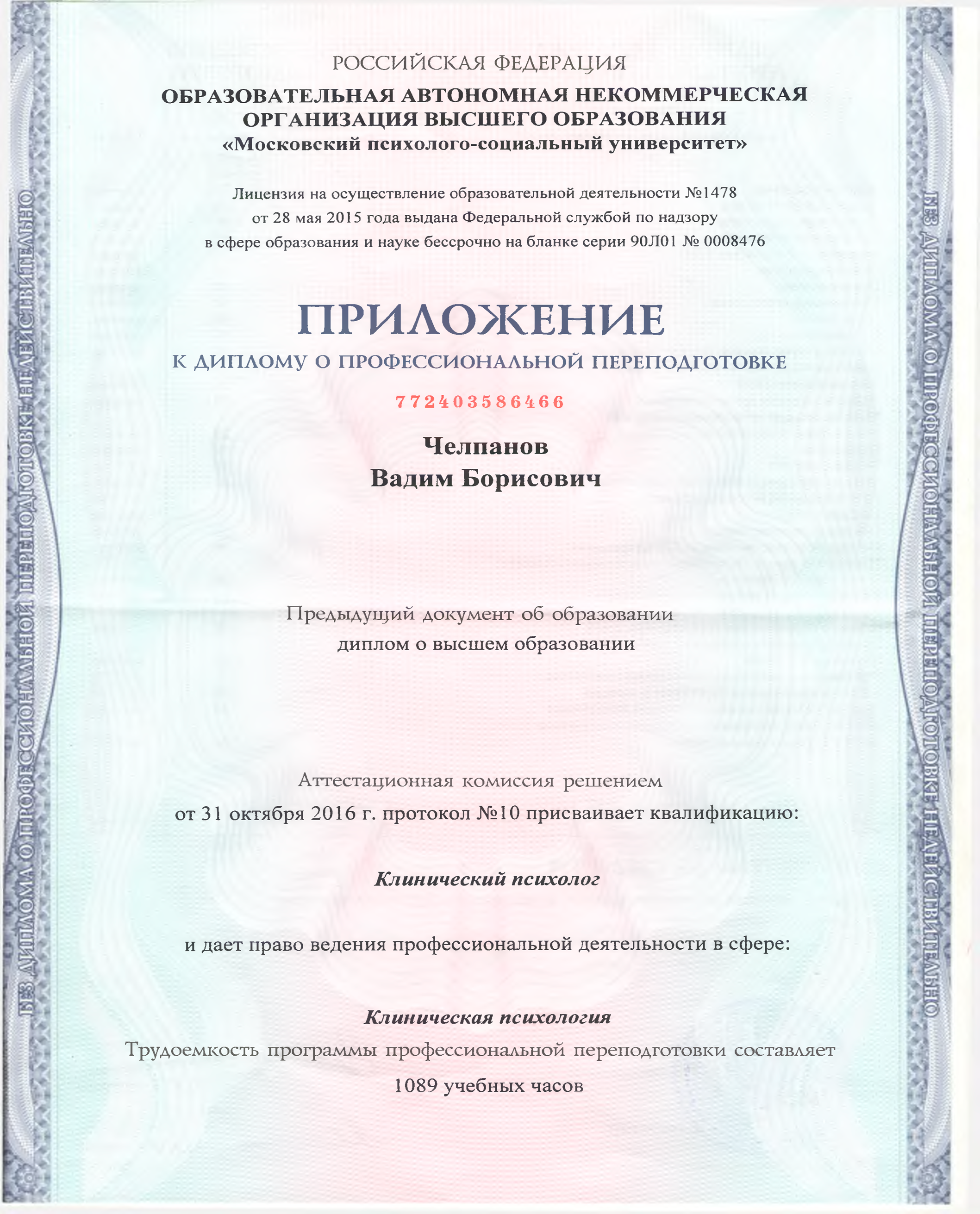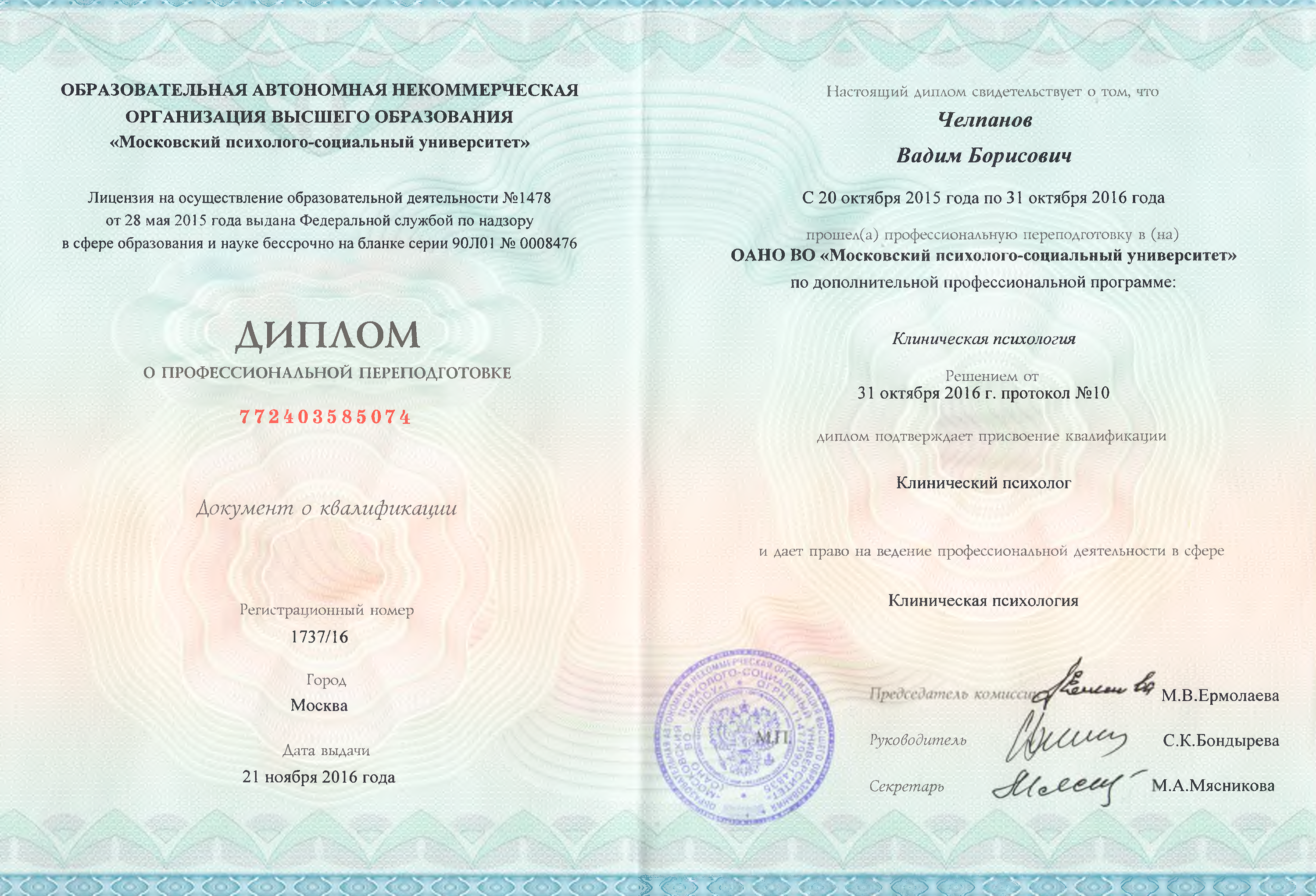Я, Челпанов Вадим, являюсь магистром филологии, клиническим психологом и кандидатом психологических наук, одним из ведущих преподавателей курсов повышения квалификации и профессиональной переподготовки на кафедре криминалистики юридического факультета МГУ им. М.В. Ломоносова.